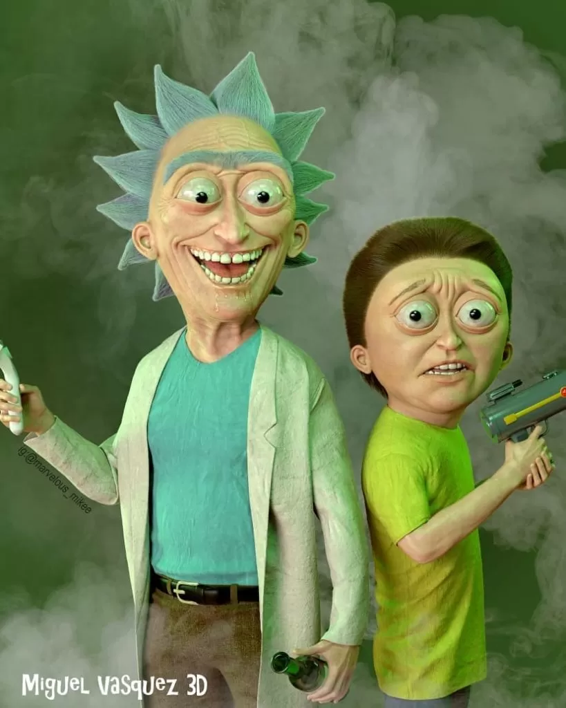 O artista plástico Miguel Vasquez cria personagens em 3D, e idealizou um projeto sensacional aonde busca criar versões hiper-realistas (e meio bizarras) dos íconicos personagens de desenhos animados, como Rick and Morty, Du, Dudu e Edu, Os Simpsons, entre outros. Os resultados finais são imagens altamente impactantes.