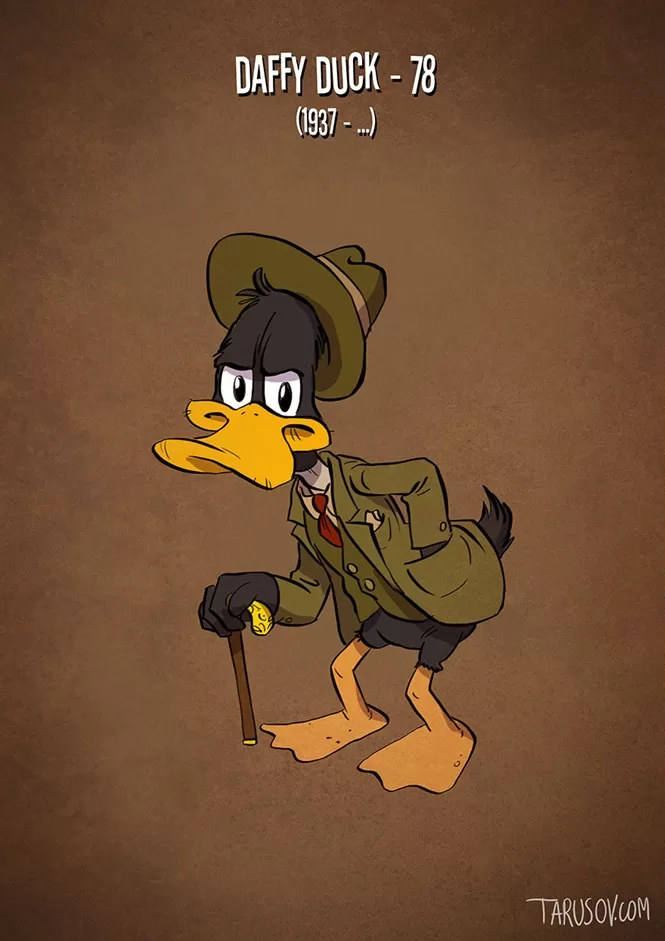 Artista mostra o envelhecimento dos personagens de desenhos animados.