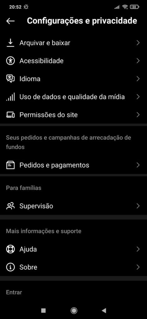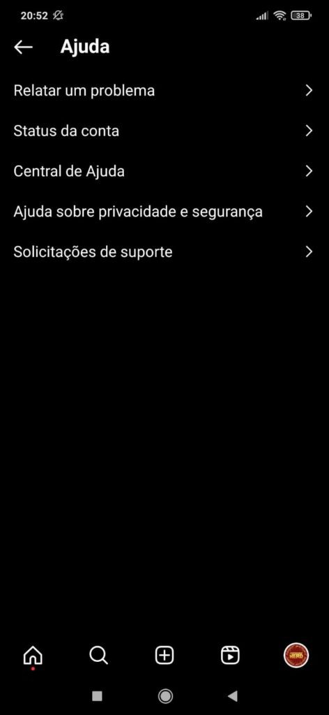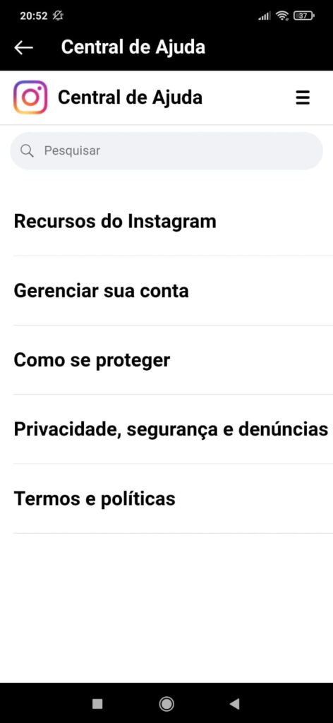 - Role para baixo e selecione “Ajuda” e depois “Central de Ajuda”.