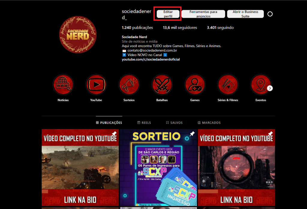 - Clique em “Editar perfil”.