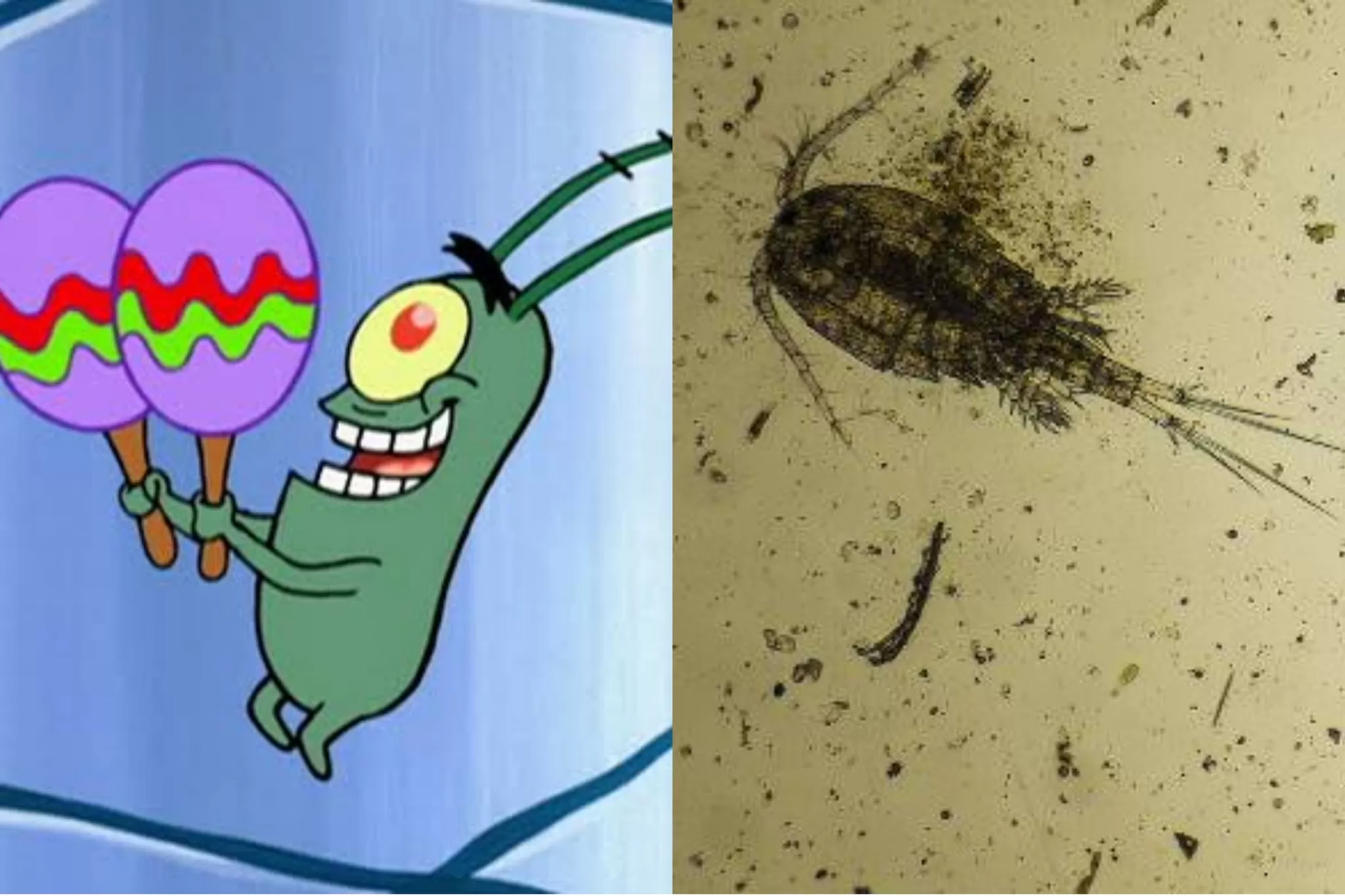 O vilão da série, Plankton, representa os micro-organismos chamados plânctons, que são uma das bases da cadeia alimentar marinha. Na vida real, eles são essenciais para o equilíbrio ecológico e servem de alimento para diversos animais marinhos.