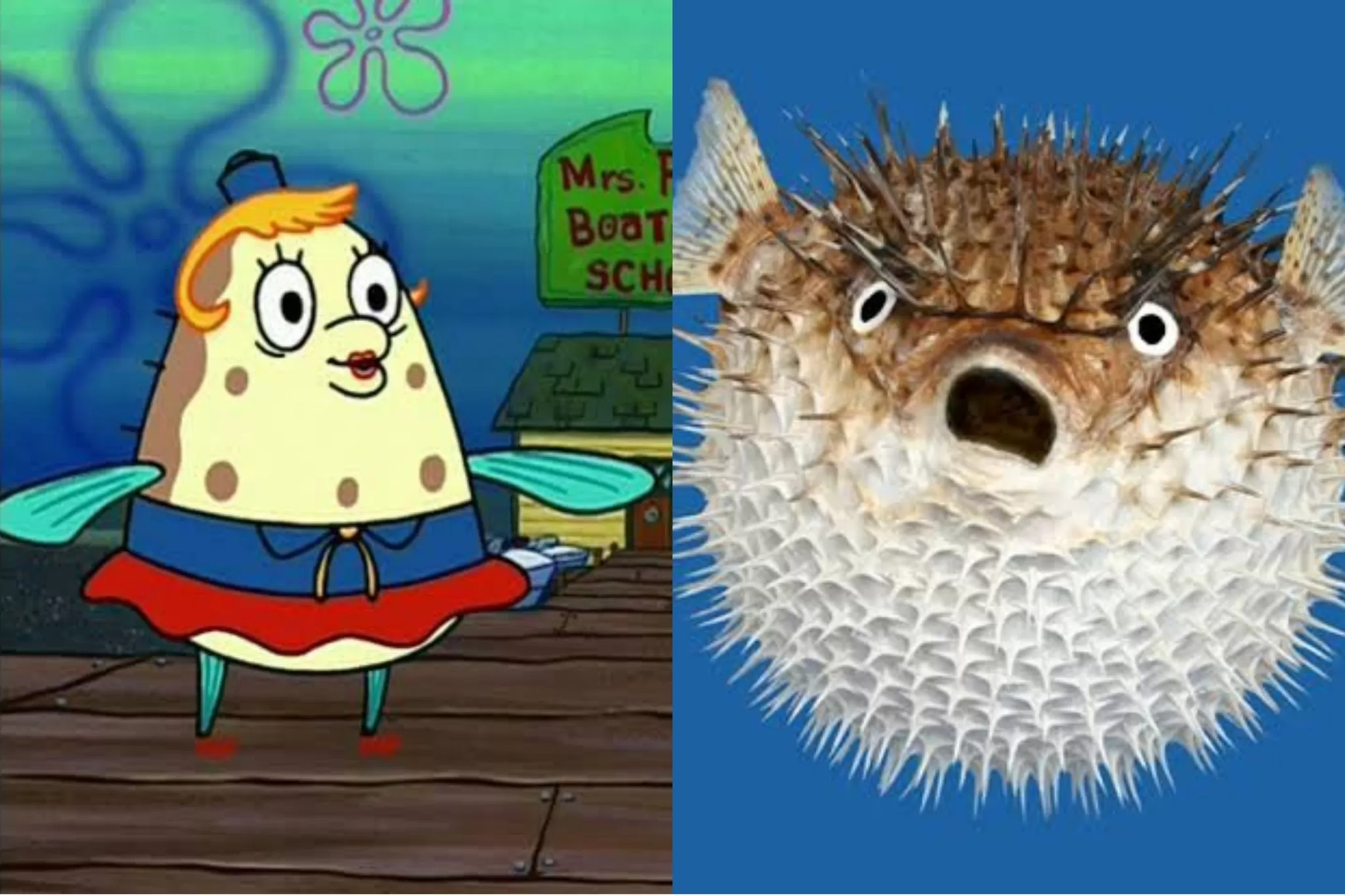 A professora de direção de Bob Esponja é um baiacu, um peixe conhecido por sua capacidade de inflar como mecanismo de defesa. Assim como o animal real, a Sra. Puff se infla quando fica estressada ou assustada, algo que acontece frequentemente nas aulas de Bob Esponja.